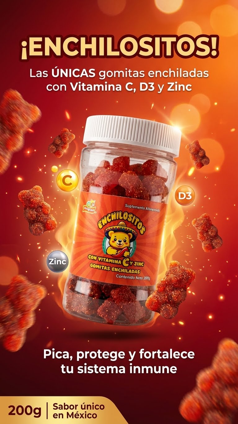 Enchilositos están elaboradas con vitaminas C, D3 y zinc, ingredientes esenciales para el sistema inmunológico y la salud ósea. Además, están hechas con ingredientes naturales de alta calidad, sin sabores artificiales ni químicos, para garantizar un producto saludable y delicioso.