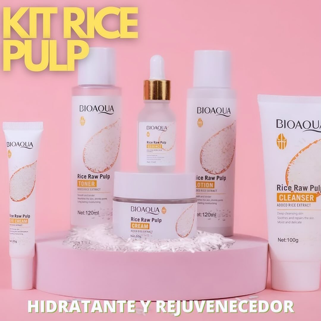 El Kit está formulado con ingredientes naturales como el extracto de arroz, que hidratan profundamente y renuevan tu piel sin químicos dañinos. ¡Renueva tu piel con el poder de la naturaleza! 🌿✨